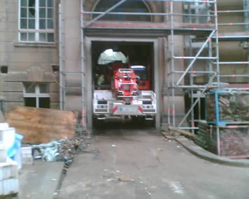 Bei 2,49 m lichte Weite haben alle "nein danke" gesagt. Fa. Werner ist ohne Schaden rein. | ...auf engstem Raum | |
