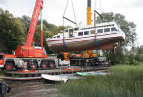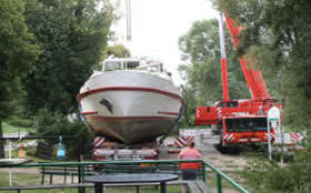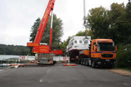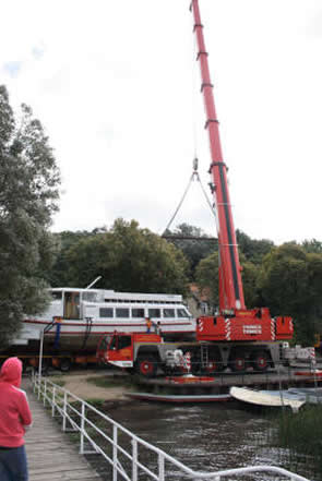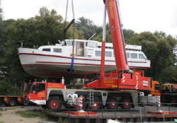 Boot Fürstenwalde - Buckow: 60 Tonnen-Boot mit 100 Tonner und 200 Tonner in Fürstenwalde raus und mit 2 x 200 Tonner in Buckow wieder rein. |